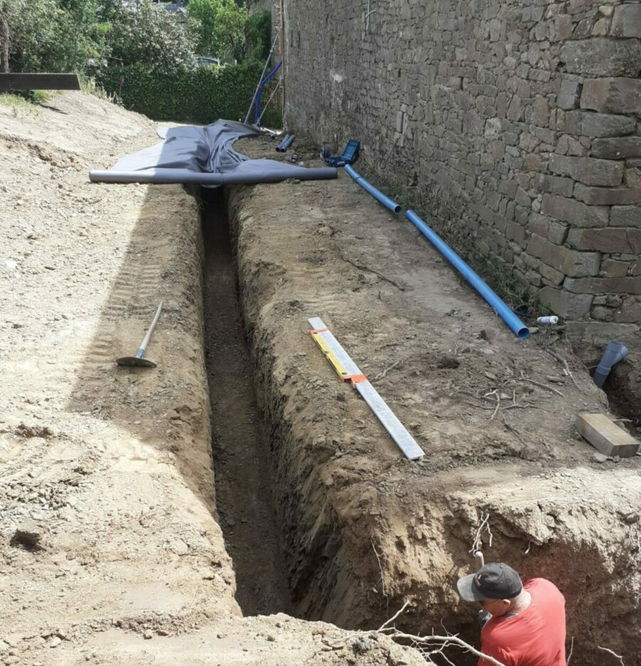 Décaissement, pose de drains, réseaux eaux usées et pluviales